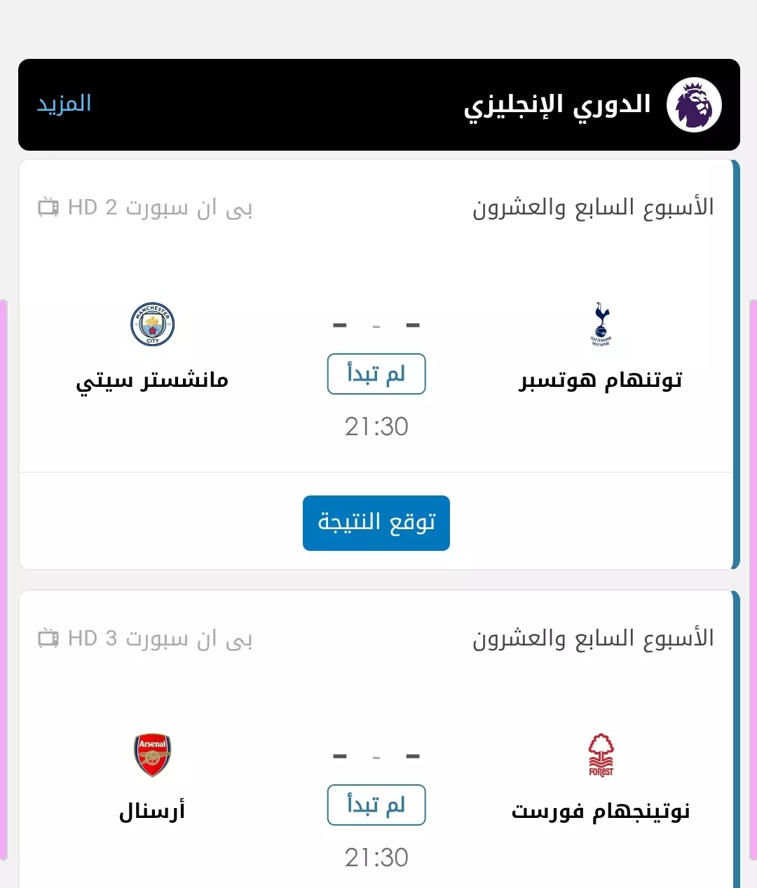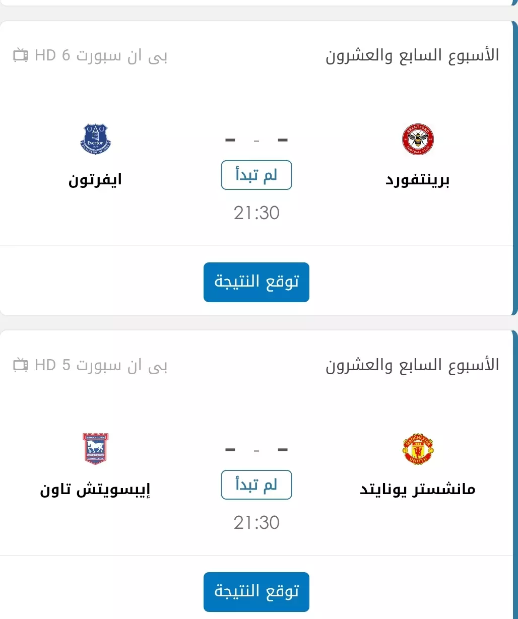 كما تأتي مباراة ليفربول ونيوكسل أيضا في الدوري الإنجليزي لمواصلة الحفاظ علي اعتلاء الصدارة ،ويصارع مانشيستر سيتي الظروف الصعبة لملاحقة البقاء في المربع الذهبي بالدوري الإنجليزي.