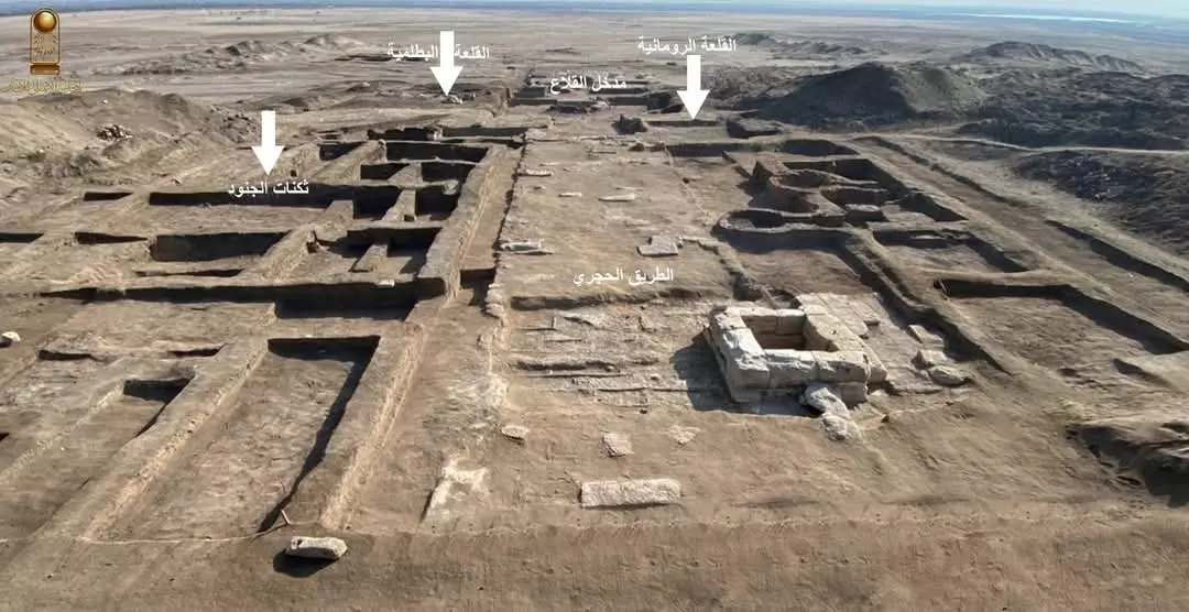 ومن جانبه أشار محمد عبد البديع رئيس قطاع الاثار المصرية، أن البعثة عثرت كذلك على طريق بعرض 11 متر وطول يتجاوز 100 متر، مرصوف ببلاطات من الحجر الجيري، يمتد من خارج البوابة الشرقية للقلعة الرومانية ويصل إلى قلب الموقع، لافتاً إلى أن هذا الطريق مبني فوق طريق أقدم يعود للعصر البطلمي مشيد من بلاطات من الحجر الجيري.