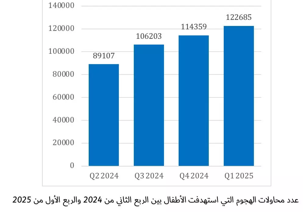 تكشف تحليلات كاسبرسكي عن زيادة مستمرة في عدد الهجمات التي تستهدف عملاء العلامات التجارية الموجهة للأطفال والعائلات. حيث ارتفع عدد الهجمات من 89,000 في الربع الثاني من عام 2024، وواصل الزيادة كل ربع سنوي حتى بلغ نحو 123,000 في الربع الأول من 2025. وكشفت كاسبرسكي عن أكثر من 432,000 محاولة اختراق من هذا النوع خلال فترة التحليل.