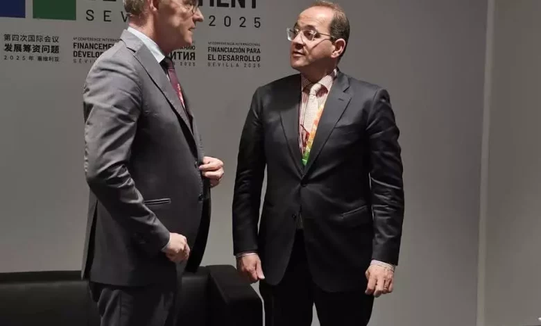 عقد أحمد كجوك وزير المالية، لقاءً ثنائيًا مع روبرت فان دير زي المدير المالي لبرنامج الأغذية العالمي، على هامش مشاركتهما فى المؤتمر الدولى الرابع للتمويل من أجل التنمية بأسبانيا.